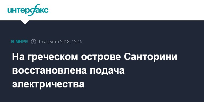Фира (Греция). 15 августа. INTERFAX.RU - Власти Санторини в четверг сумели полностью восстановить подачу электроэнергии на этом греческом острове, передает корреспондент "Интерфакса".