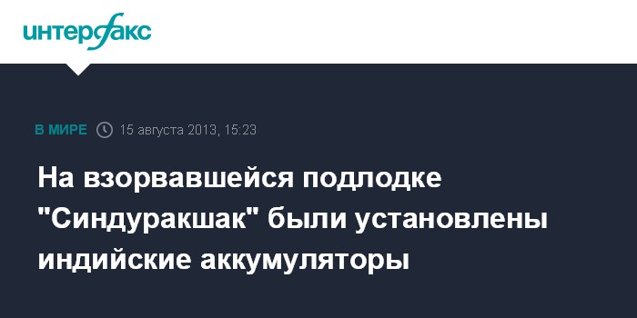 На взорвавшейся подлодке "Синдуракшак" были установлены индийские аккумуляторы