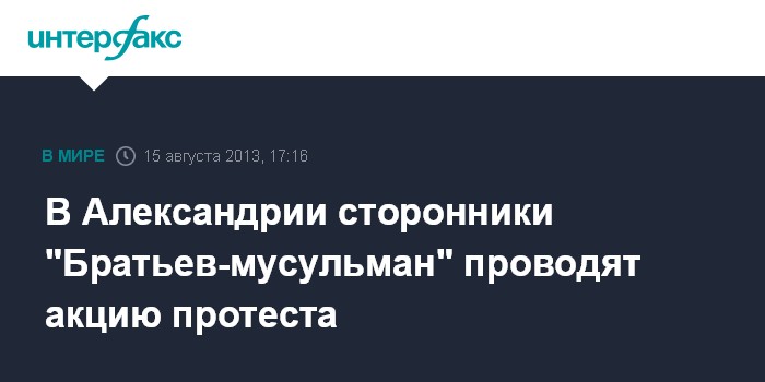 Каир. 15 августа. INTERFAX.RU - Сотни активистов исламистского движения "Братья-мусульмане" вышли в четверг вечером на улицы второго по величине египетского города - Александрии.