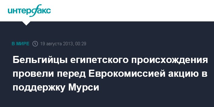 Брюссель. 19 августа. ИНТЕРФАКС - По призыву граждан Бельгии египетского происхождения, более 500 человек провели в воскресенье вечером перед зданием Еврокомиссии в Брюсселе акцию протеста против силового разгона в Каире манифестации сторонников экс-президента Мухаммеда Мурси.