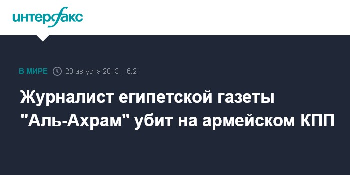 Каир. 20 августа. INTERFAX.RU - Военнослужащий армии Египта застрелил египетского журналиста на армейском КПП близ Каира, сообщили во вторник журналистам неназванные представители местных служб безопасности.