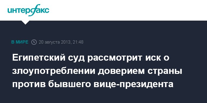 Египетский суд рассмотрит иск о злоупотреблении доверием страны против бывшего вице-президента