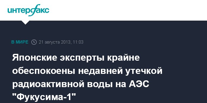 Токио. 21 августа. INTERFAX.RU - Утечка примерно 300 тонн радиоактивной воды из одного из резервуаров АЭС "Фукусима-1" представляет собой серьезный инцидент, заявили в среду в Управлении ядерного регулирования Японии (NRA).