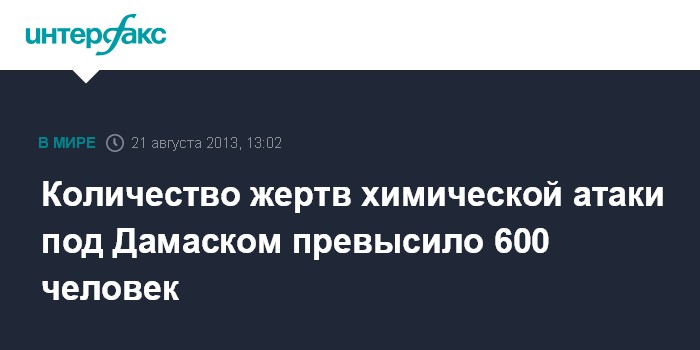 Дубай. 21 августа. INTERFAX.RU - 635 человек стали жертвами применения химического оружия в пригороде Дамаска Восточной Гуте, передает в среду межарабский телеканал "Аль-Арабийя".