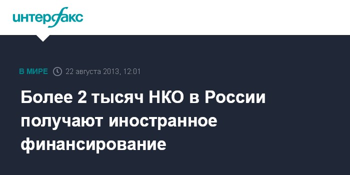 Москва. 22 августа. INTERFAX.RU - По данным российской Генпрокуратуры, 2,2 тысяч некоммерческих организаций в России получают иностранное финансирование.