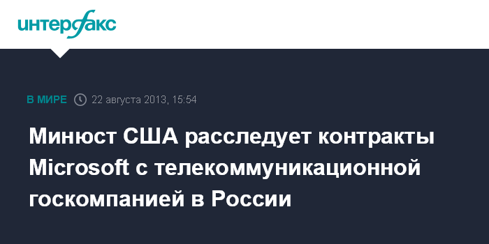Минюст США расследует контракты Microsoft с телекоммуникационной госкомпанией в России