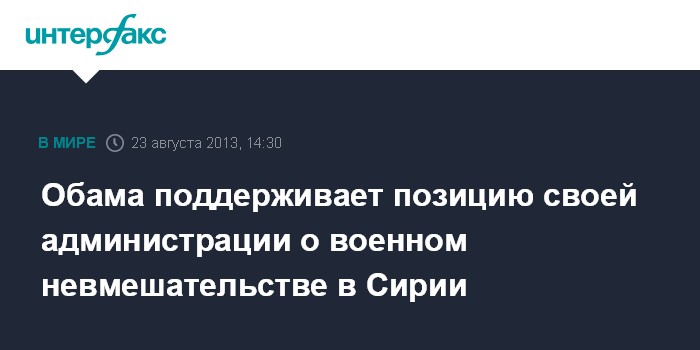 Обама поддерживает позицию своей администрации о военном невмешательстве в Сирии