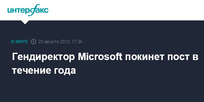 Москва. 23 августа. INTERFAX.RU - Генеральный директор корпорации Microsoft Стив Балмер уйдет в отставку в ближайший год. Об этом сообщается в письме Балмера сотрудникам Microsoft, опубликованном на сайте корпорации.