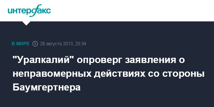 Москва. 26 августа. INTERFAX.RU - ОАО "Уралкалий" опровергает заявления Следственного комитета Белоруссии о неправомерных действиях со стороны гендиректора компании Владислава Баумгертнера или других менеджеров "Уралкалия".