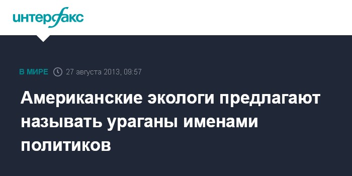 Нью-Йорк. 27 августа. INTERFAX.RU - Группа экологов из США 350 Action подготовила петицию с просьбой к Всемирной метеорологической организации присваивать ураганам имена политиков, которые пренебрежительно относятся к проблеме изменения климата, передает BBC.