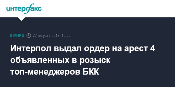 Источник в российских правоохранительных органах сообщил "Интерфаксу", что международный ордер Интерпола на арест топ-менеджеров БКК поступил в Москву, "и сейчас рассматривается".