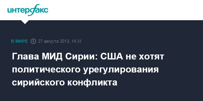 Бейрут. 27 августа. INTERFAX.RU - Власти США не стремятся к мирному урегулированию конфликта в Сирии, заявил во вторник глава сирийского МИД Валид Муаллем.
