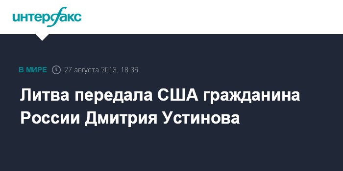 Вильнюс. 27 августа. INTERFAX.RU - Литва уже передала для уголовного преследования в США гражданина России Дмитрия Устинова.