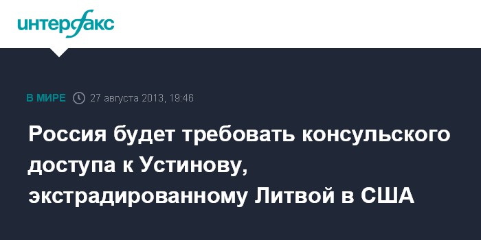 Россия будет требовать консульского доступа к Устинову, экстрадированному Литвой в США