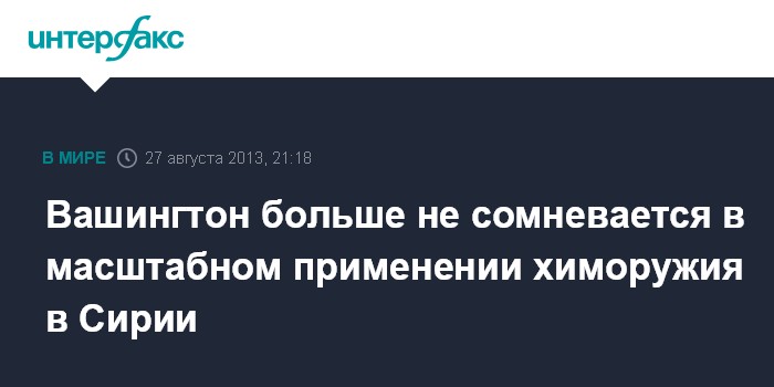 Вашингтон. 27 августа. INTERFAX.RU - Химическое оружие близ столицы Сирии Дамаска 21 августа было применено в большом масштабе, сообщил во вторник представитель Белого дома Джей Карни.