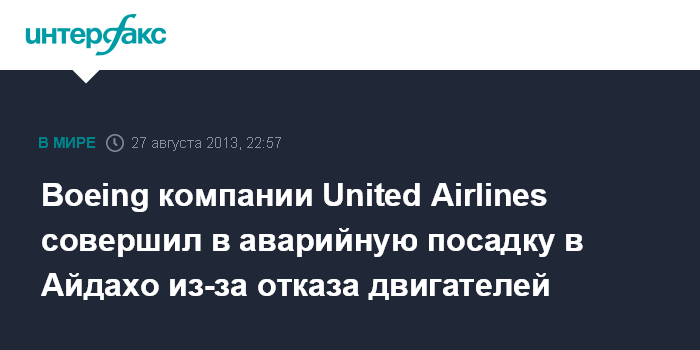 Boeing компании United Airlines совершил в аварийную посадку в Айдахо из-за отказа двигателей