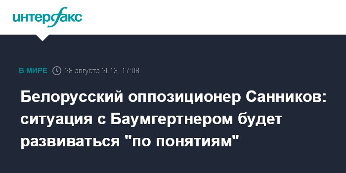 Белорусский оппозиционер Санников: ситуация с Баумгертнером будет развиваться "по понятиям"