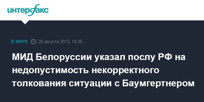 МИД Белоруссии указал послу РФ на недопустимость некорректного толкования ситуации с Баумгертнером