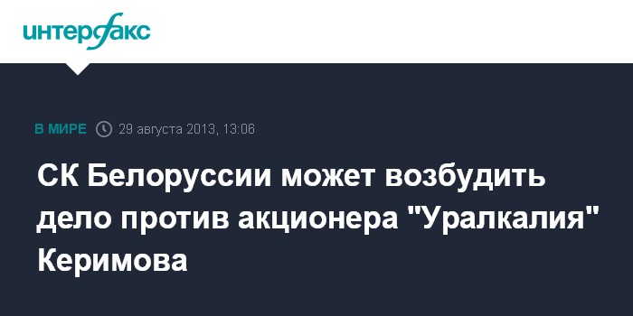 Минск. 29 августа. INTERFAX.RU - Следственный комитет Белоруссии намерен возбудить уголовное дело в отношении крупнейшего акционера ОАО "Уралкалий" Сулеймана Керимова, сообщил агентству "Интерфакс-Запад" официальный представитель СК Павел Траулько.