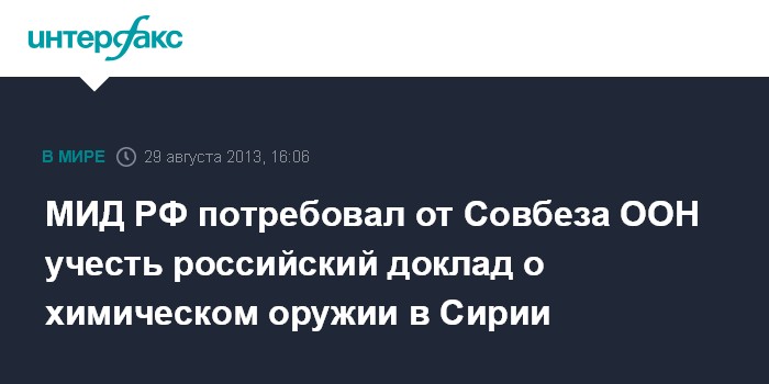 МИД РФ потребовал от Совбеза ООН учесть российский доклад о химическом оружии в Сирии
