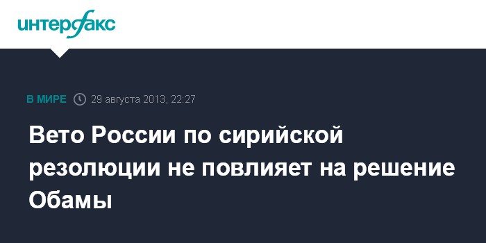 Вето России по сирийской резолюции не повлияет на решение Обамы