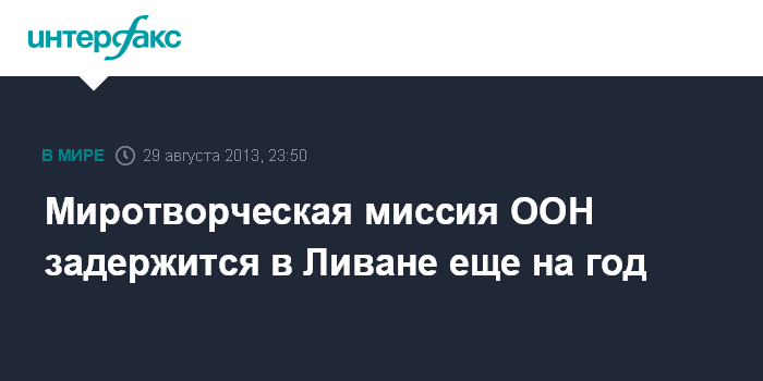 Нью-Йорк (ООН). 30 августа. INTERFAX.RU - Страны-члены Совета Безопасности ООН приняли решение о продлении на год срока пребывания миротворцев в Ливане.