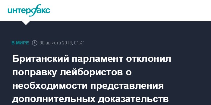 Лейбористы ранее внесли в предложенный правительством проект резолюции поправку, согласно которой законодатели должны принимать окончательное решение об участии Лондона в силовой операции только после того, как инспекторы ООН представят свой доклад о результатах расследования сообщений о применении химоружия в Сирии.