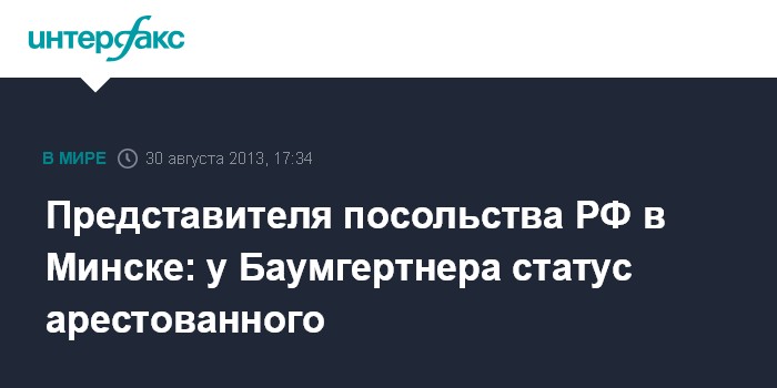 Представителя посольства РФ в Минске: у Баумгертнера статус арестованного