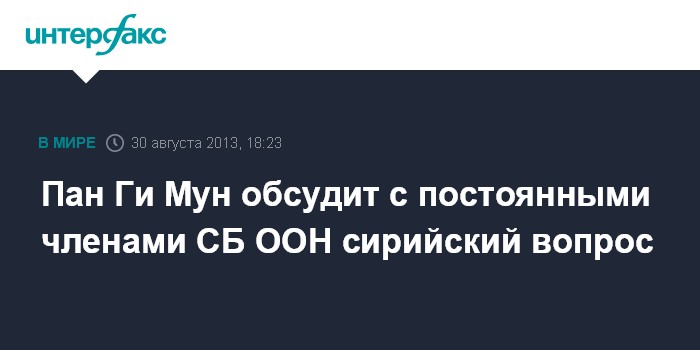 Нью-Йорк. 30 августа. INTERFAX.RU - Генеральный секретарь ООН Пан Ги Мун проведет в пятницу встречу с пятью постоянными членами СБ ООН по ситуации в Сирии, сообщил официальный представитель главы всемирной организации.