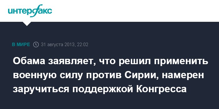 Президент также сообщил о втором решении, которое он принял в связи с событиями в Сирии. Он указал, что намерен "заручиться поддержкой Конгресса США".
