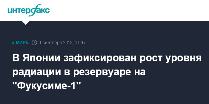 Токио. 1 сентября. INTERFAX.RU - Уровень радиации в одном из резервуаров с водой на японской аварийной АЭС "Фукусима-1" вырос в 18 раз по сравнению с показателями от 22 августа, объявили в воскресенье в компании-операторе станции TEPCO.