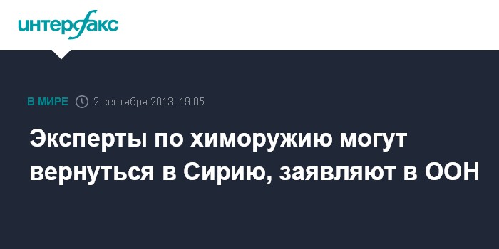 Москва/Нью-Йорк. 2 сентября. INTERFAX.RU - Эксперты ООН вернутся в Сирию для завершения работы по расследованию случаев возможного применения химического оружия.