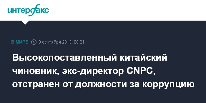 Высокопоставленный китайский чиновник, экс-директор CNPC, отстранен от должности за коррупцию