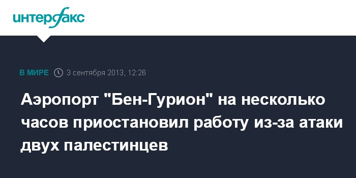 Иерусалим. 3 сентября. INTERFAX.RU - Работа израильского аэропорта "Бен-Гурион" в Тель-Авиве были прервана на несколько часов в связи с атакой двух палестинцев, пишет во вторник газета Haaretz.