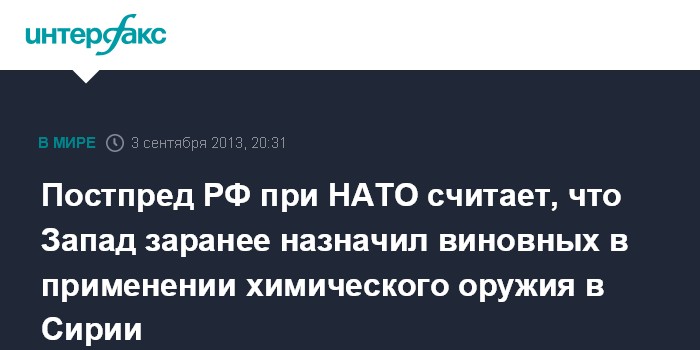 Постпред РФ при НАТО считает, что Запад заранее назначил виновных в применении химического оружия в Сирии