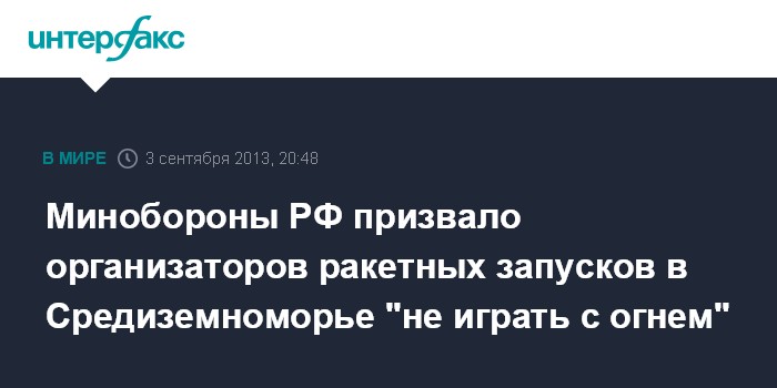 Минобороны РФ призвало организаторов ракетных запусков в Средиземноморье "не играть с огнем"