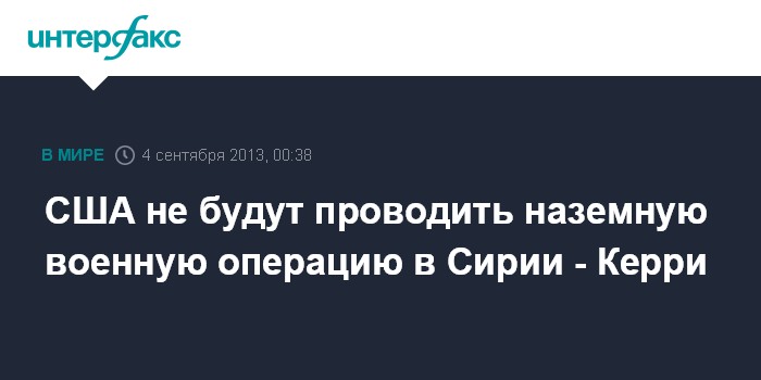 Москва. 4 сентября. ИНТЕРФАКС - Наземная операция в Сирии исключается, заявил Дж.Керри на первом публичном заседании Комитета Сената США по международным делам.