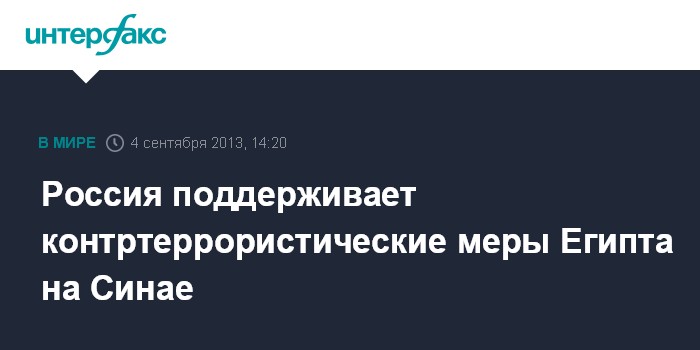 Москва. 4 сентября. INTERFAX.RU - Россия поддерживает антитеррористическую операцию египетских военных на Синайском полуострове.
