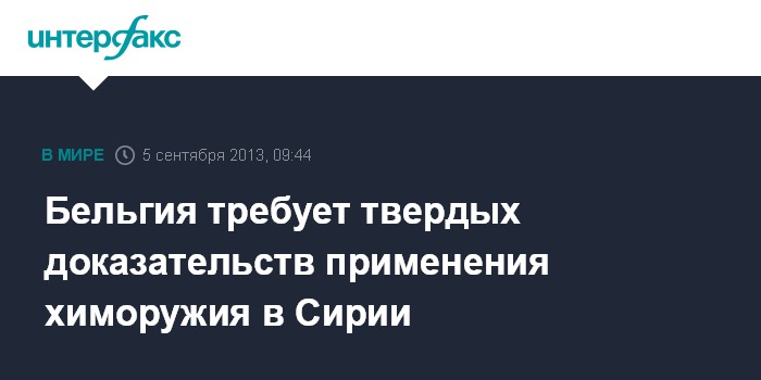 Брюссель. 5 сентября. INTERFAX.RU - Бельгия продолжает требовать неопровержимых доказательств использования химоружия режимом Башара Асада у тех стран, которые таковыми располагают, заявил в среду в Брюсселе бельгийский министр иностранных дел Дидье Рейндерс.