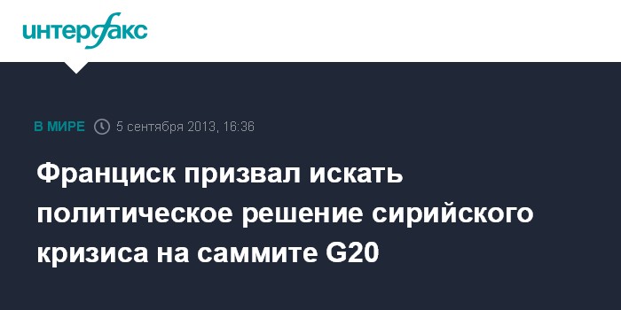 Франциск призвал искать политическое решение сирийского кризиса на саммите G20