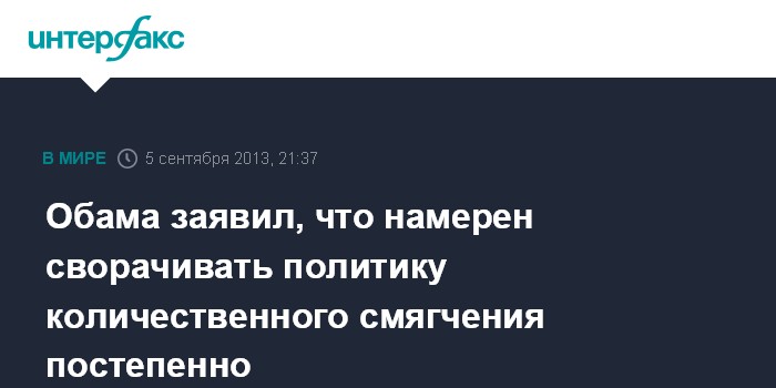 Санкт-Петербург. 5 сентября. INTERFAX.RU - Президент США Барак Обама в ходе саммита G20 заявил, что политика количественного смягчения будет сворачиваться постепенно и в разумных пределах, сказал министр финансов РФ Антон Силуанов на брифинге по итогам первого дня саммита.