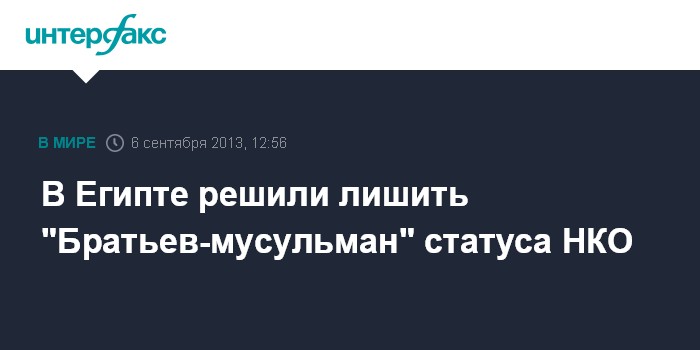 Каир. 6 сентября. INTERFAX.RU - Власти Египта приняли решение лишить движение "Братья-мусульмане" статуса некоммерческой организации, сообщает местная газета "Аль-Акбар".