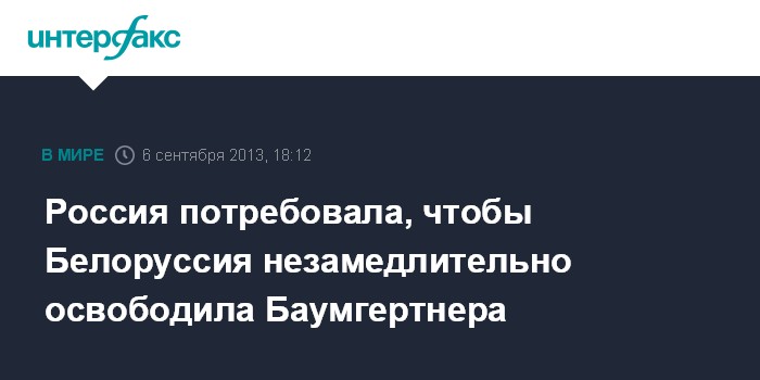 Россия потребовала, чтобы Белоруссия незамедлительно освободила Баумгертнера