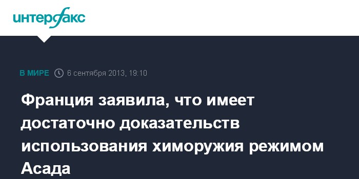 Стрельна. 6 сентября. INTERFAX.RU - Французский президент Франсуа Олланд заявил, что у многих стран, включая Францию, есть доказательства того, что сирийский режим использовал химоружие.