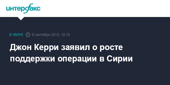 Лондон. 8 сентября. INTERFAX.RU - Госсекретарь США Джон Керри заявил, что число государств, готовых присоединиться к военным действиям в Сирии, выросло и составляет не менее десяти.