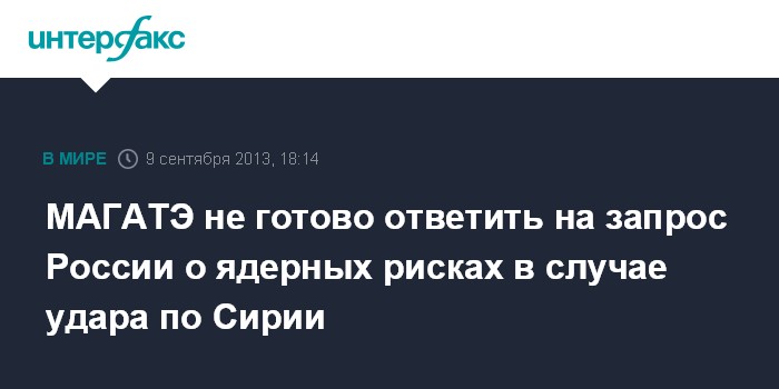 МАГАТЭ не готово ответить на запрос России о ядерных рисках в случае удара по Сирии