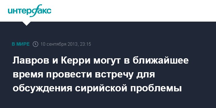 Лавров и Керри могут в ближайшее время провести встречу для обсуждения сирийской проблемы