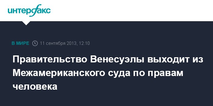 Каракас. 11 сентября. INTERFAX.RU - Венесуэла официально покинула Межамериканский суд по правам человека, обвинив его в защите интересов США.