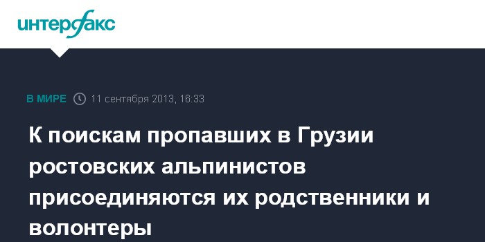 Туристы из Ростовской области В.Бушуева, 1983 г.р., и А.Сидоров, 1977 г.р., ушли на восхождение по северо-восточному гребню горы Ушба в Грузии 31 августа. Группа должна была приехать 6 сентября 2013 года, но не вернулась к сроку.