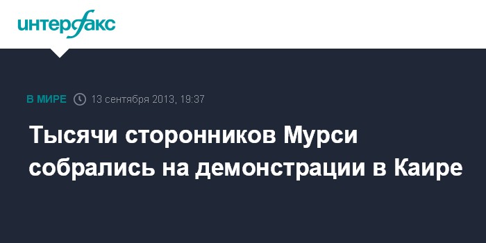 Бейрут. 13 сентября. INTERFAx.RU - Тысячи сторонников экс-президента Египта Мухаммеда Мурси принимают участие в демонстрациях в столице страны, сообщает в пятницу ливанская газета "Дейли стар".